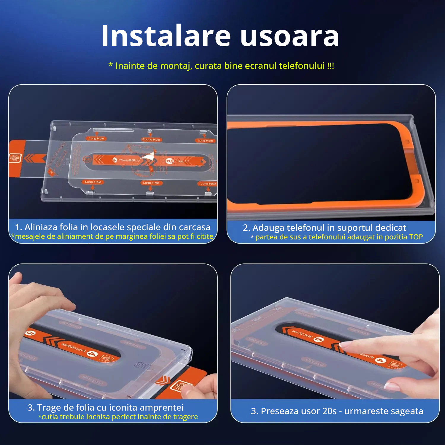 Adeziv pe intreaga suprafata - asigurand aderenta indelungata a foliei la ecran.